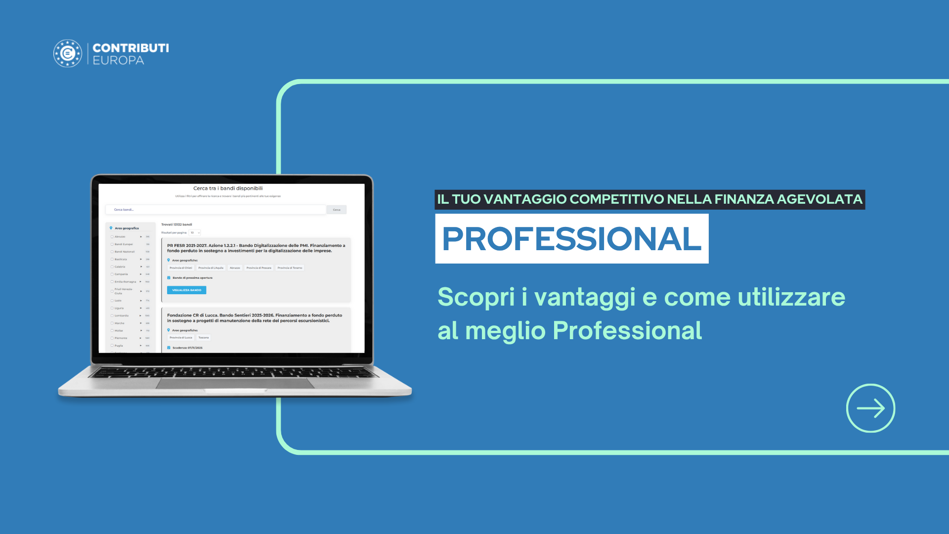 Nuove funzionalità dell’abbonamento Professional: il portale bandi che semplifica la finanza agevolataOttobre 30, 2025 🎯 Vuoi saperne di più? Scarica subito la guida completa alle nuove funzionalità e scopri come sfruttare al massimo il tuo abbonamento. 👉 Scarica la guida alle nuove funzionalità di Professional &nbs [...]